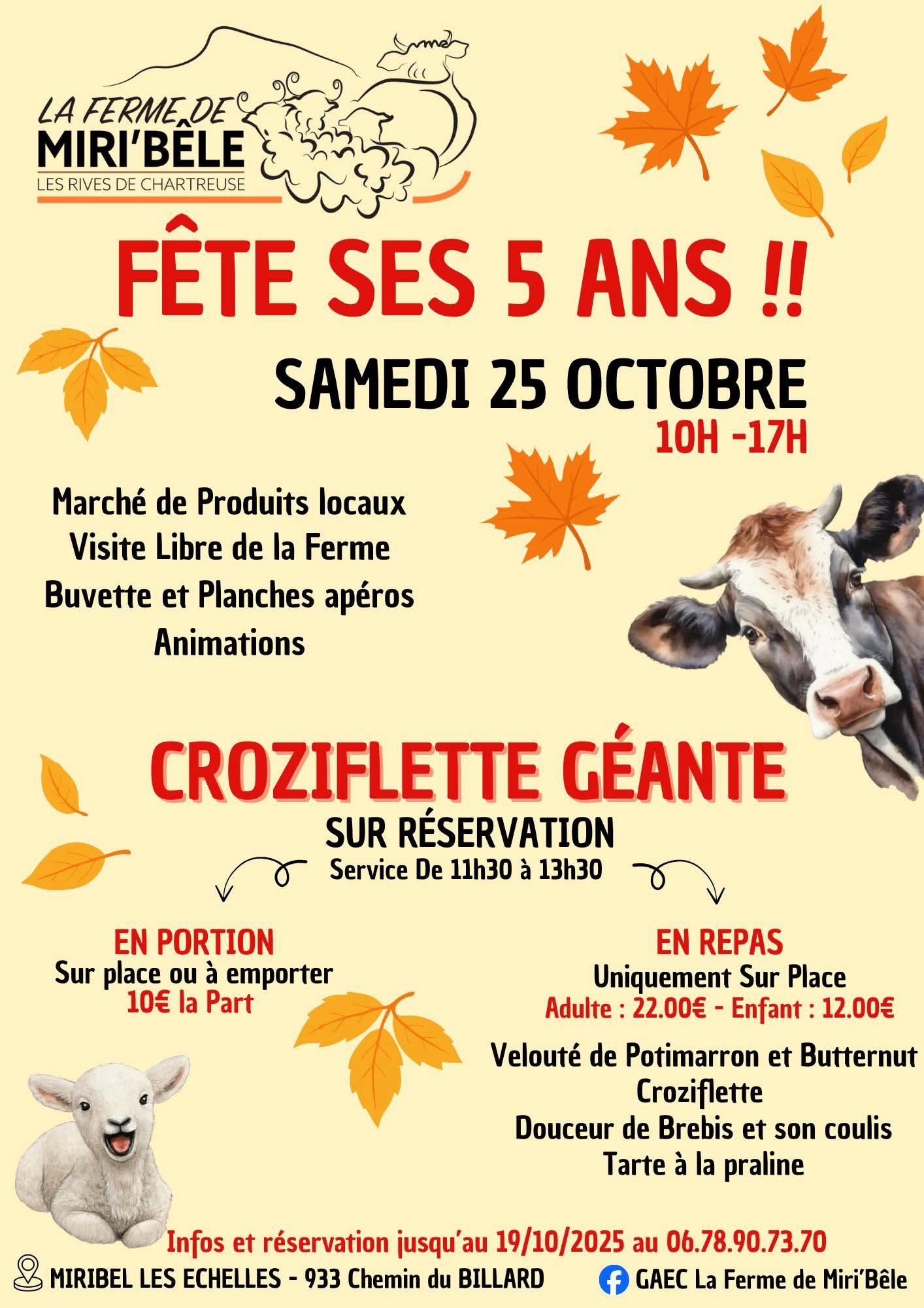 Nous fêtons les 5 ans de la ferme, à cette occasion venez partager un moment convivial avec au programme : marché de produits locaux visite libre de la ferme.