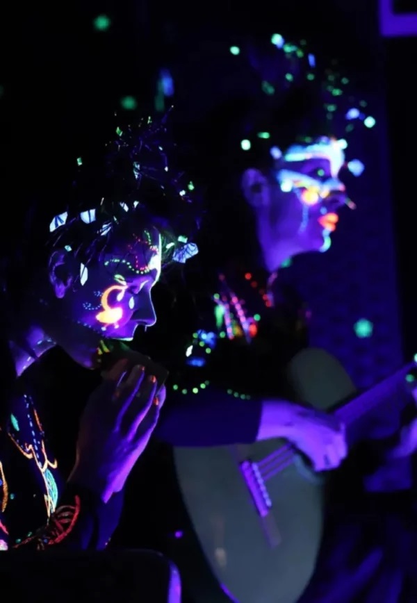 ChänChän nous invite à un voyage musical envoûtant aux quatre coins du monde et de l’univers, dans le noir (presque) complet.