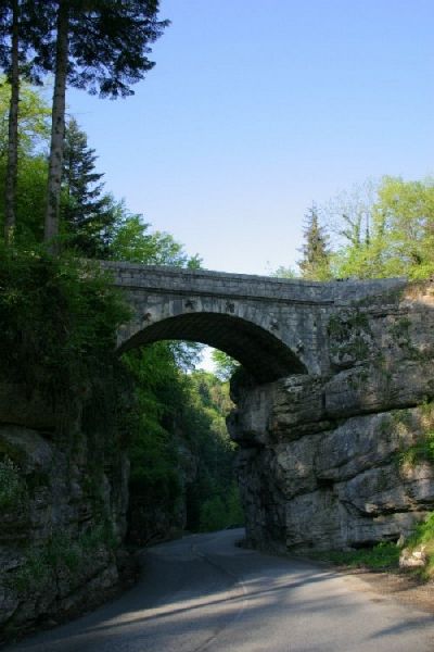 Le pont construit sous Napoléon III, qui successivement surplombe puis supporte la route, constitue un élément historique important et une configuration routière extrêmement rare.