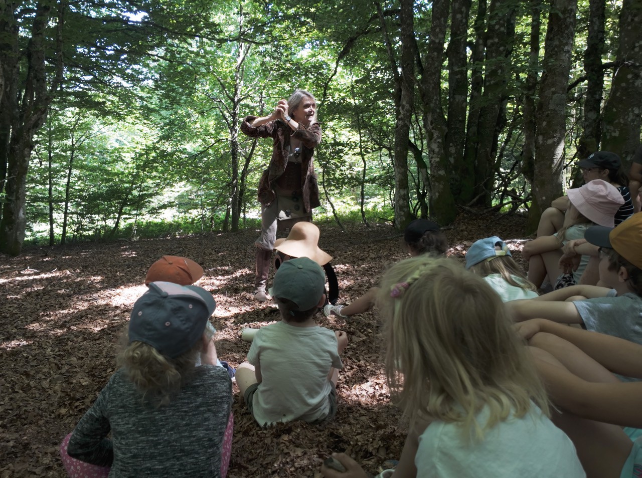 Pascale, la comédienne conteuse : « proche de la nature, je vois la forêt tous les jours, m’y promène, m’y ressource et j’ai éprouvé le désir de parler d’elle et de ceux qui la composent, les arbres! Enfin d’en raconter des histoires, des histoires qui nous donnent à bien les voir comme des êtres vivants, des histoires qui nous donnent envie de prendre du temps pour mieux les regarder, les considérer »