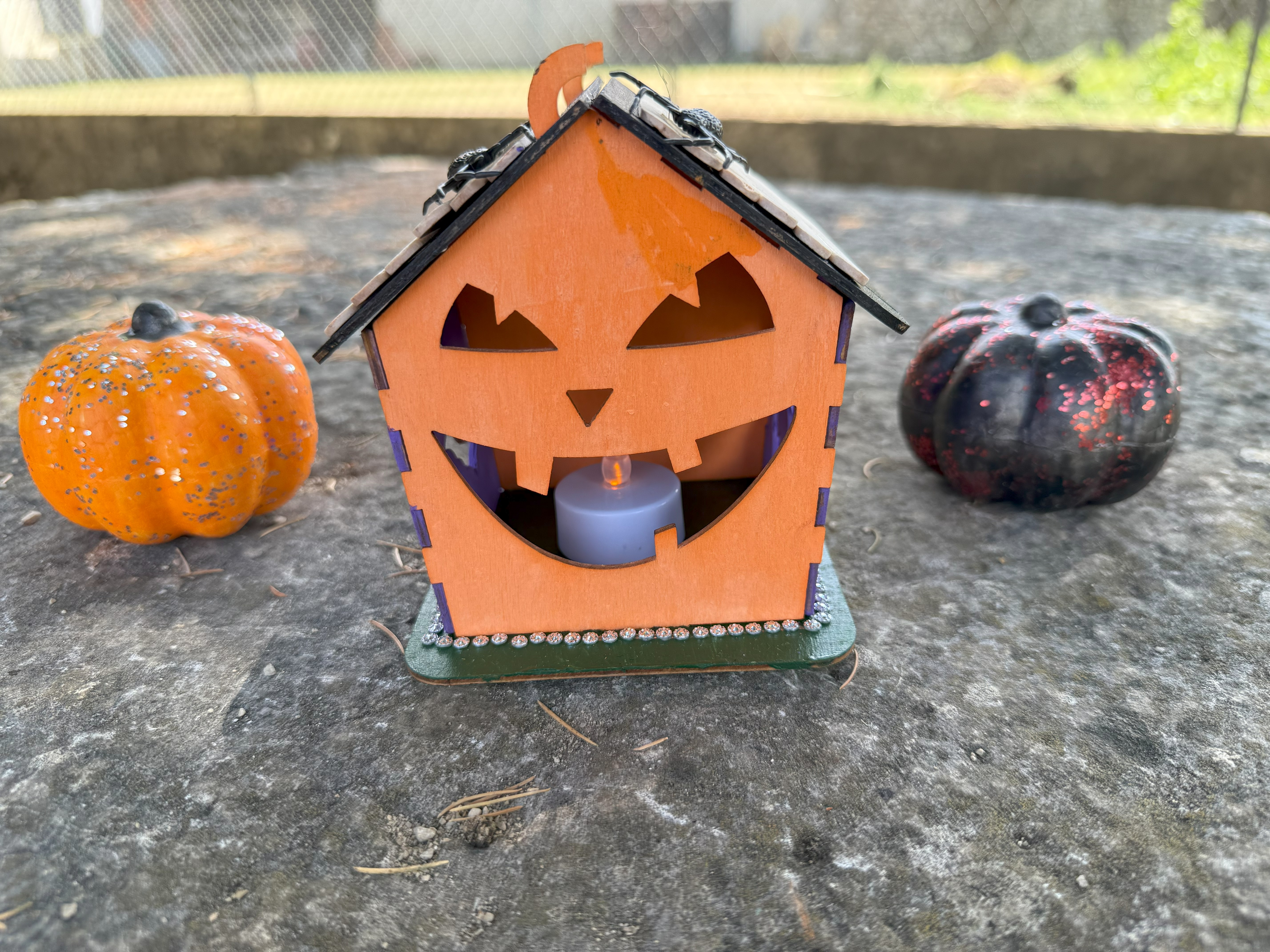 Spécial Halloween - POUR LES 4/6 ANS - Décore ton photophore en bois avant de placer la petite bougie LED fournie pour obtenir une maison hantée…