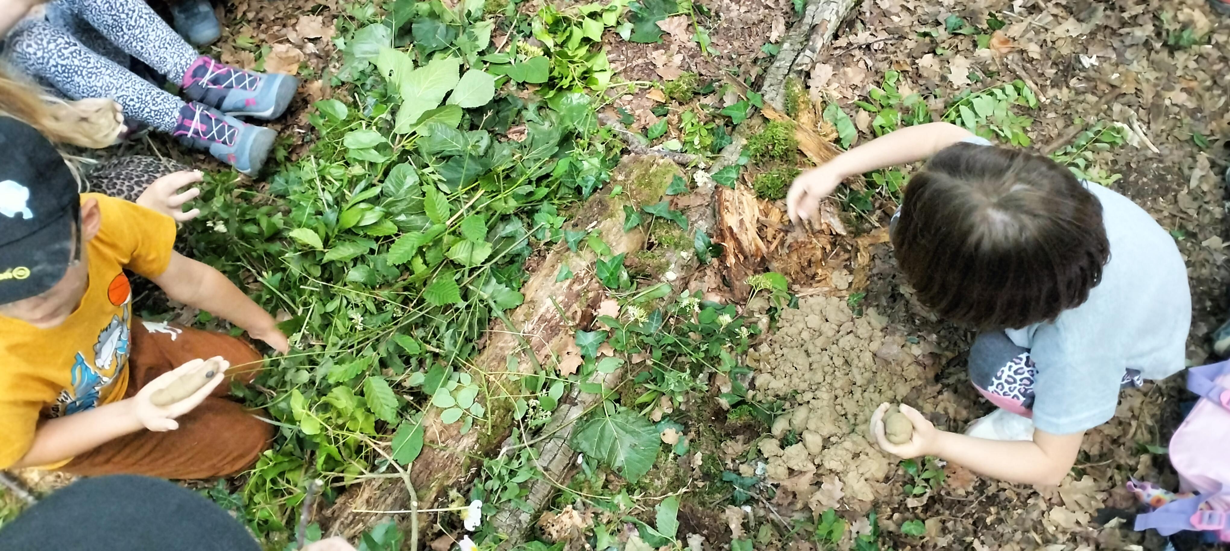 Nous ferons en chemin quelques récoltes végétales pour fabriquer, avec de l'argile, nos animaux imaginaires. Il sera alors temps de cacher nos créations au bord du chemin, au creux d’un tronc ou entre des racines.