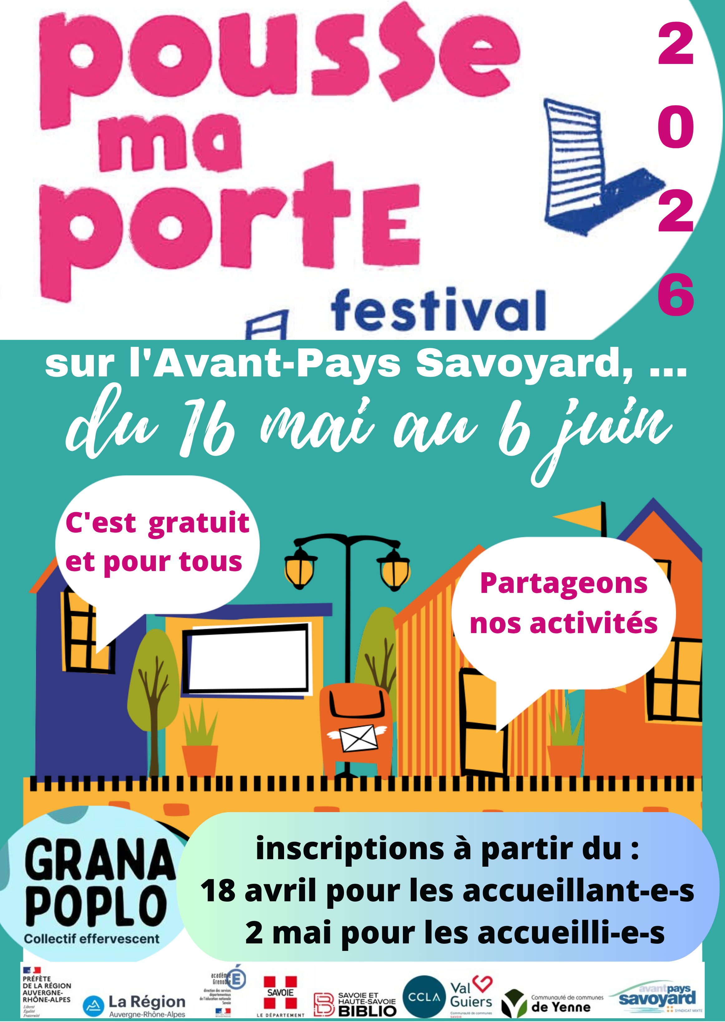 “Pousse ma porte” est un festival participatif porté par l’association Grana Poplo, qui met en relation les habitants autour d’activités variées : ateliers, moments conviviaux, pratiques sportives ou culturelles, jardinage…
