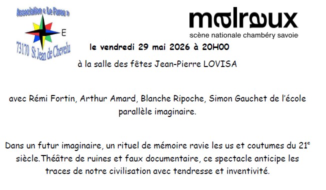 Spectacle proposé par l'Espace MALRAUX de Chambéry en collaboration avec l'Association Le Farou et la Commune de Saint-Jean-de-Chevelu dans le cadre du dispositif de la scène Nationale "Savoie Nomade"